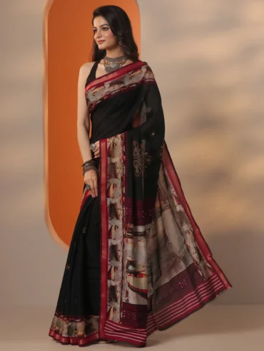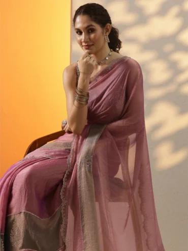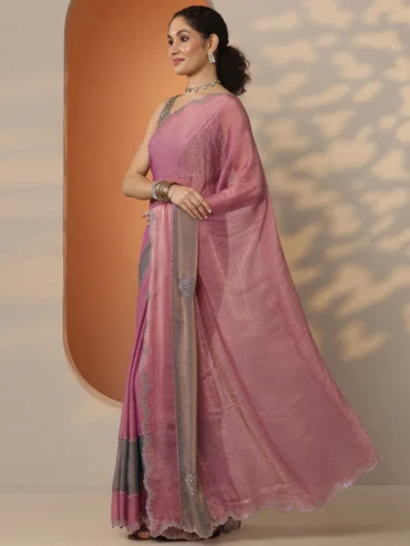 Multi Embellished Silk Blend Saree With Unstitched Blouse Piece